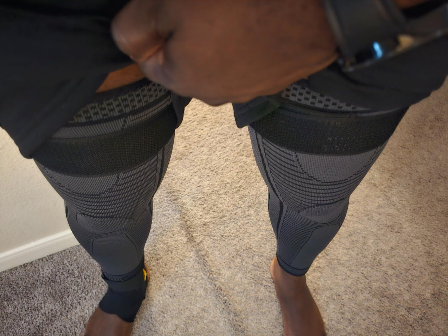 Step 3: Slip on the Compression Knee Brace to lock in support.